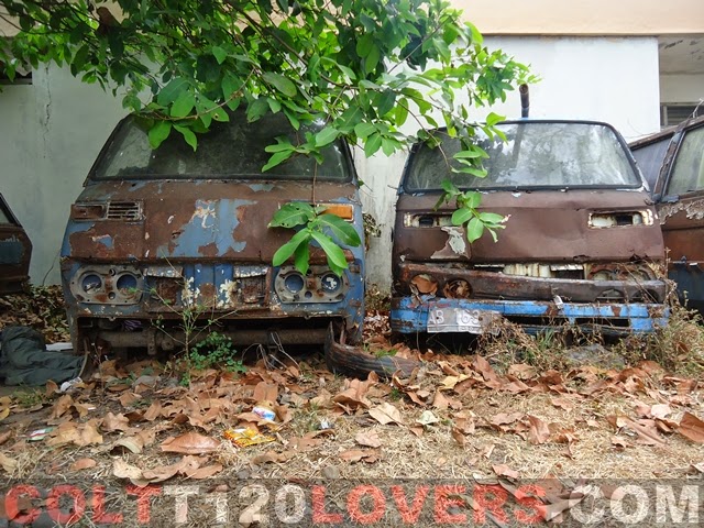 | Malangnya nasib mobil-mobil MITSUBISHI COLT T120 minibus ini, dibiarkan mangkrak tak terurus, beginilah nasib kendaraan inventaris TVRI, tak dilelang, tapi di'jemur' dibiarkan sampai pada rontok. Andaikan saja dirawat atau dilelang..hmmm |